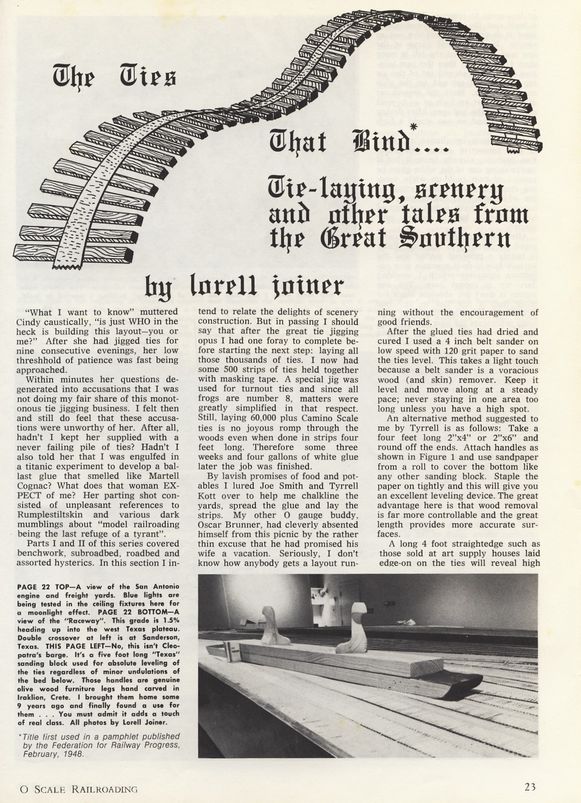 ¡¡Lorell Joiner»á¤Î¤³¤È¤ò¤´Â¸ÃΤÀ¤í¤¦¤«¡£'93ǯ¤ÎMR¤ÎGreat Model railroad¥·¥ê¡¼¥º¤ÎÃæ¤Ë¤â¼ýÏ¿¤µ¤ì¤Æ¤¤¤ë¡£MR¤Î1980ǯ6·î¹æ¤Îɽ»æ¤Ë¤â¼Ì¿¿¤¬¤¢¤ë¡£Èà¤Ï2¥ö·îÁ°¤ËË´¤¯¤Ê¤Ã¤¿¡¢¤Èͧ¿Í¤«¤éÃΤ餵¤ì¤¿¡£¡¡¥Æ¥¥µ¥¹½£San Antonio¤ÎÊý¤Ç¡¢¤¹¤Ð¤é¤·¤¤¥ì¥¤¥¢¥¦¥È¤ò½êͤ·¤Æ¤¤¤¿¡£¤½¤Îµ¬ÌÏ¡¢¥·¡¼¥Ê¥ê¤ÎÀºÌ©¤µ¡¢¼ÖíҤΥ³¥ì¥¯¥·¥ç¥ó¡¢Áö¹ÔÀǽ¤Î²þÎÉ¡¢¿®¹æÁõÃÖ¡¢À©¸æÁõÃÖ¤¹¤Ù¤Æ¤ÎÌ̤ÇÅö»þÀ¤³¦ºÇ¹â¥ì¥Ù¥ë¤Ç¤¢¤Ã¤¿¤³¤È¤Ï¡¢´Ö°ã¤¤¤Ê¤¤¡£