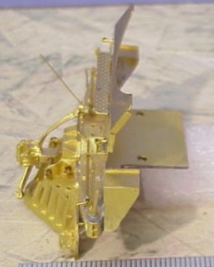 手摺は0.75 mmのブラス・ワイヤと1.5 mmアングルの組み合わせである。巻き付けてハンダ付けするととてもしっかりする。アングル内側にはブラス・ワイヤをハンダ付けしてそれを本体に開けた孔に差し込む。相手がプラスティックなので、強く挿して摩擦で抜けないようにする。接着剤なしでも十分なくらいである。あまり強く差し込むと時間が経つと割れてくるから、針金の長さ方向にニッパで傷をつけて差し込む。そのとき、本体の孔はやや大きめにして傷をつけたときに出来るふくらみの先端が食い込むようにする。文字で書くと難しいが、やってみれば簡単である。これがクリープ割れを防ぐ方法である。