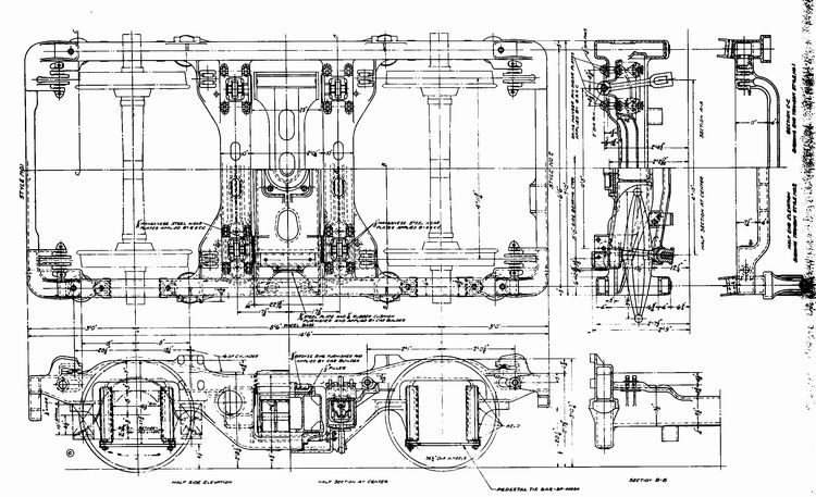この軸配置4-10-0のセンティピード・テンダは、積載量を大きくしてフレームの剛性を高くすると同時に、線路の不整に対応する目的で作られた。4軸台車2つの設計もあったようだが、それではねじり剛性の高いフレームでは、バネのたわみだけでは追従できなかった。イコライザを使えば、かなりのひねりにも追従できる。