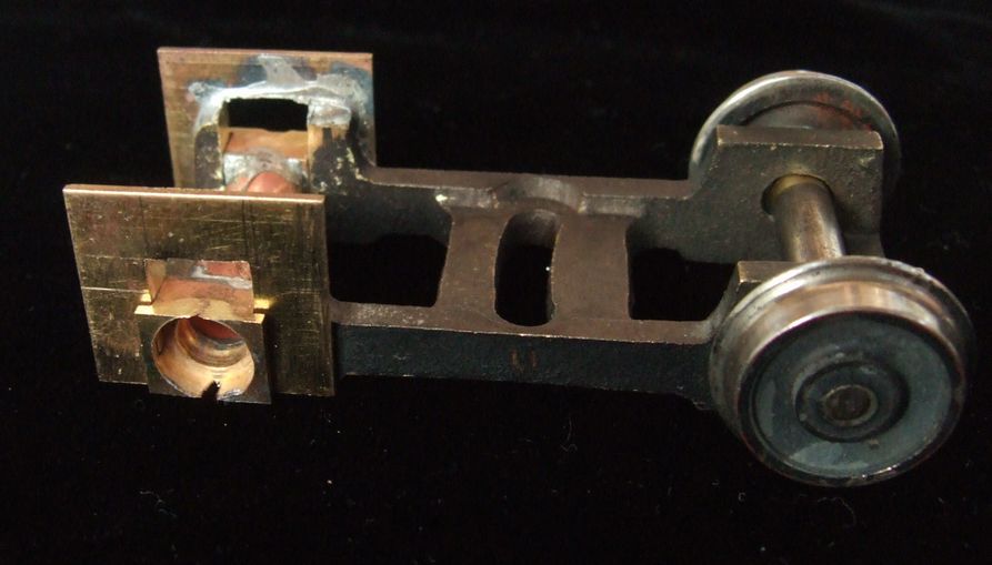 軸箱をパイプでつないでキャノン・ボックスという構造にする。左右の中心に荷重を掛ける必要があるからである。力が掛かるので硬質ハンダを使っておく。