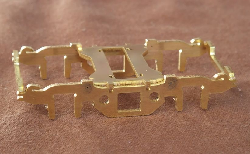 しかし、理屈を考えると鉄系合金がベストである。友人はステンレスで台車を作った。ワイヤーカットと見紛うばかりの仕上がりだ。筆者もそうしようと思ったが、追加工を必要とするのでブラスにした。ステンレスではネジを立てることは無理である。
