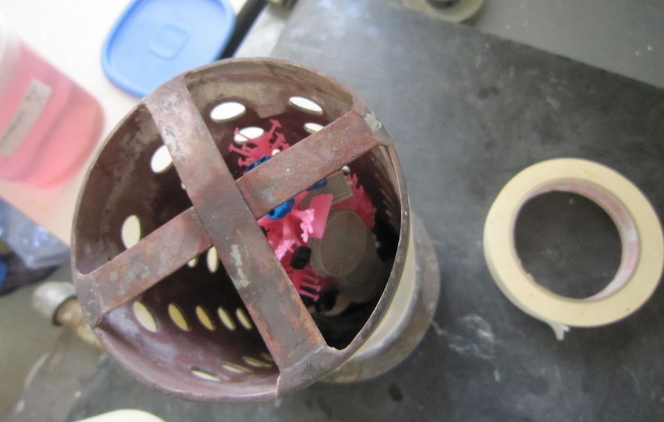 これは千手観音のように沢山のパーツを付けたツリィである。フラスコに入れてから、上から覗き、フラスコへの距離を保っているかどうかを確認する。左の写真の右下に付けてあるファン・ガードは湯流れが悪く失敗した。