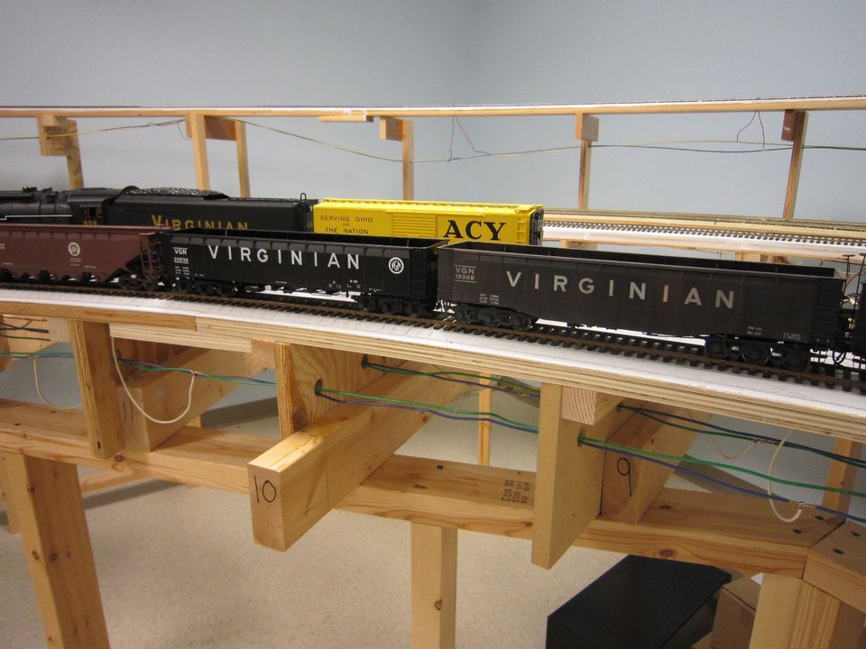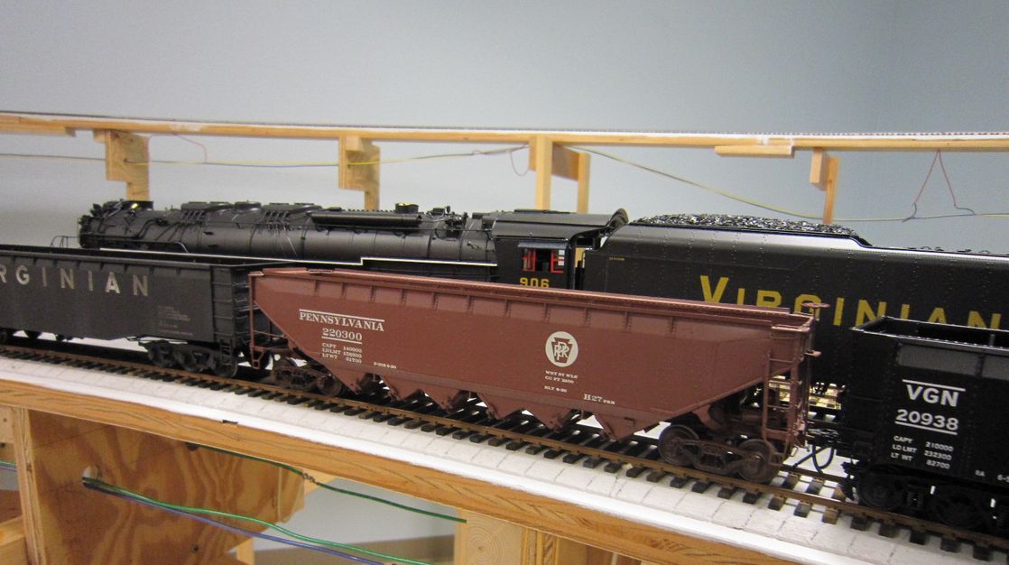 機関車はLimaの2-6-6-6 が主体である。何台もあって、C&O とVirginian の両方の塗装がある。貨車は比較的珍しいVirginian のホッパ車である。よくぞこれだけ集めたと思う。生産輌数が少ないものであって、買い集めるには手間が掛かるはずだ。これらの貨車は、初期の韓国製のものであり、車輪の形状がよくない。また、踏面が荒く、走らせると凄まじい音がする。だからこそ、筆者のLow-D車輪が必要となる。
