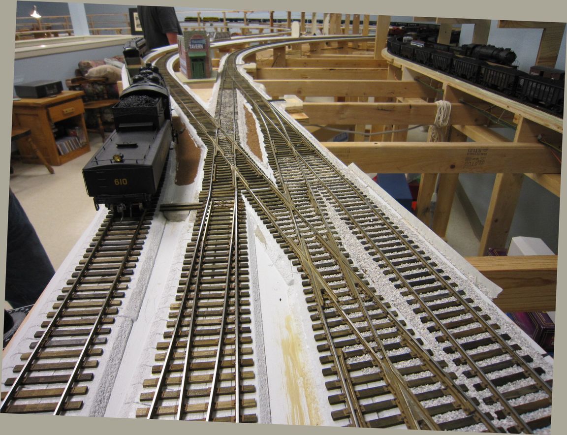 とはいえども、このような連続した分岐は作るのが大変である。実に上手に作ってあり、機関車がつんのめったりはしない。