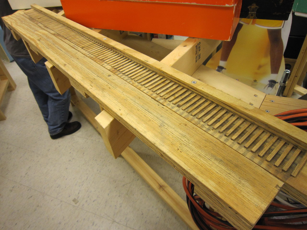 これは枕木を整列させるジグである。これにはめ込んで、粘着テープではがし取り、接着剤を塗った路盤に着地させる。筆者も採用した。これはLorrel Joiner氏のアイデアである。