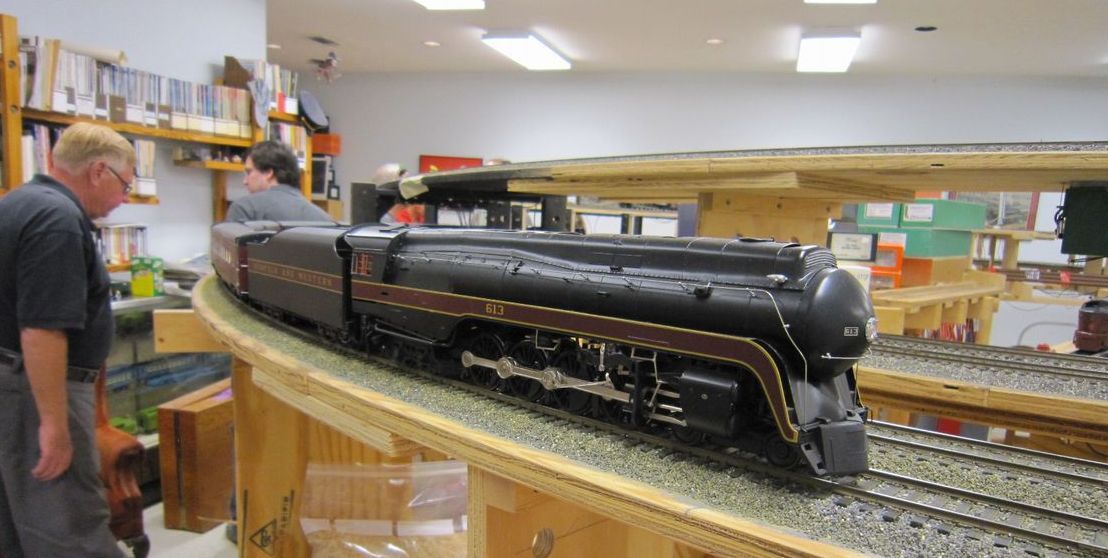 車輌はどれもゆっくり走り、ひっかかリがない。どの機関車も十分な補重がしてあり、レイルの継ぎ目でドスドスと音を立てて走った。ただし、列車の長さは30輌弱であった。筆者が80輌以上牽きたいと言うと、「そうするにはこのレイアウトを4倍以上大きく作る必要がある。」と言った。