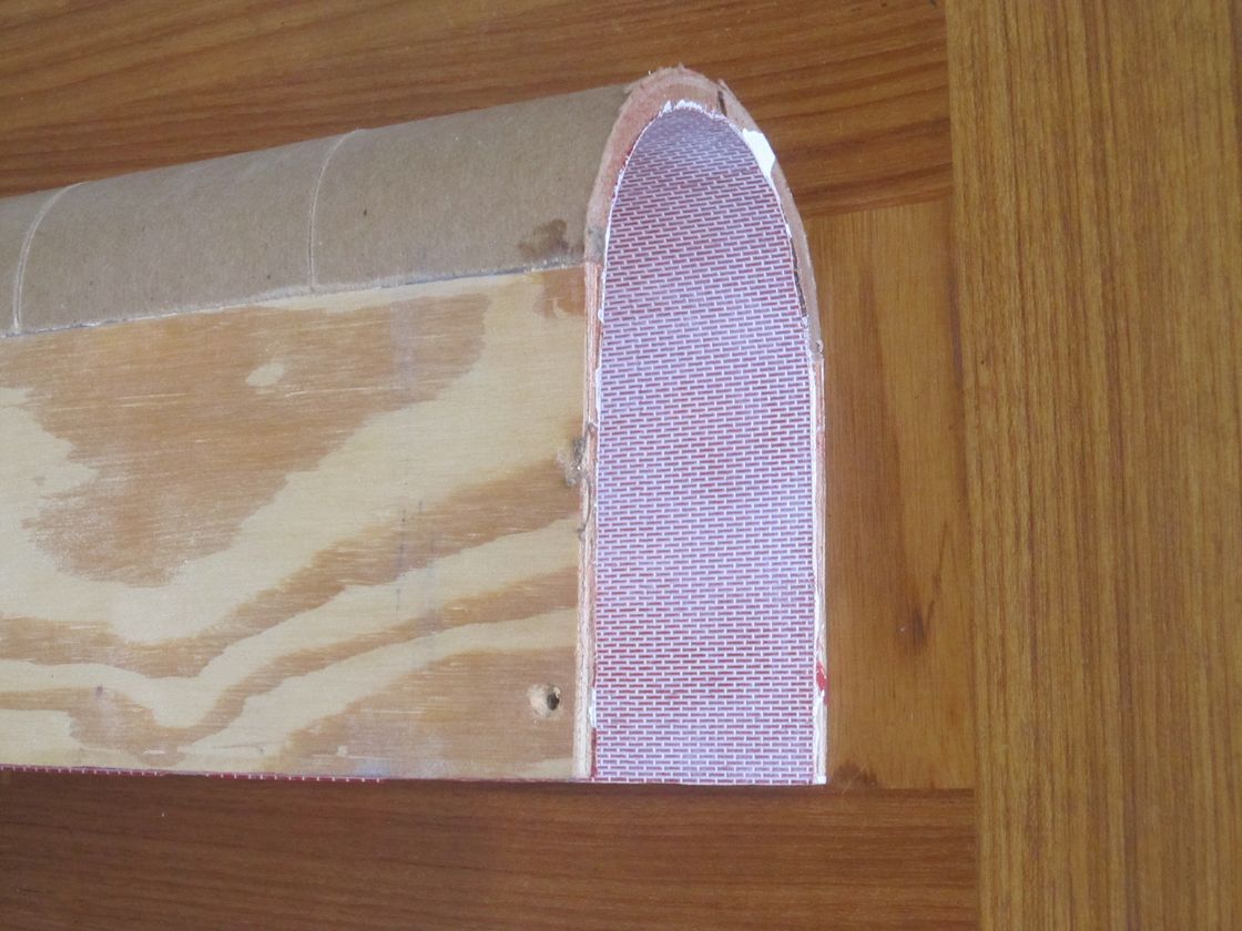 先日の写真には、未掲載分も含めて、たくさんの御答を戴いた。正解はトンネルである。ジョイナ氏はトンネルの内部も手を抜かなかった。紙管を縦割りにして接着剤で合板を貼り付け、目留めしてから、内部に煉瓦の模様の紙を張ってから、天井部に照明の取り付け穴を付けた。電球は低電圧で点灯し、うす暗かった。実に実感的で驚いた。