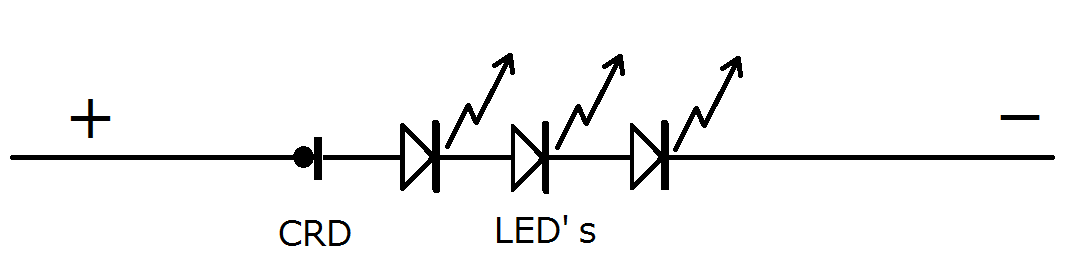LEDを購入するときに、このLEDテスタも一緒に注文した。昔と違って、最近のLEDは電流をCRD(Current Regulative Diode)電流制限ダイオードで抑える。12 Vで3個のLEDを制御することができる。DCCを導入しているときは、この方法でよい。DC方式では、もう少し低い電圧で作動するようにしないと、発車してもなかなか電燈が付かないということになる。2個のLEDというところが無難だろう。