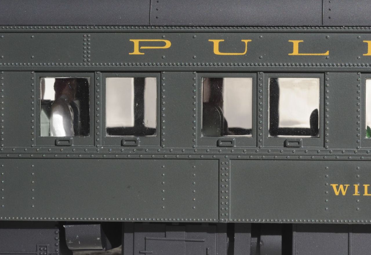 大面積の平滑な板硝子が大量生産できるようになったのは1950年代後半である。それまでのガラスは平面度が低い。このプルマンの時代のガラスは、大きなガラス製チューブを吹いて作り、それを軟らかいうちにハサミで切り開いて、グラファイト(炭素)の平盤上でアイロン掛けをして延ばしていた。すなわち、平面度はその平盤と職人のアイロンの手さばきで決まる。当時の車輌の内部に入ると、外の景色は微妙にボケて見える。平面ガラスしか見たことがない現代人には奇妙な景色である。のちに引き上げ法が開発されたが、素晴らしい出来ではなかった。