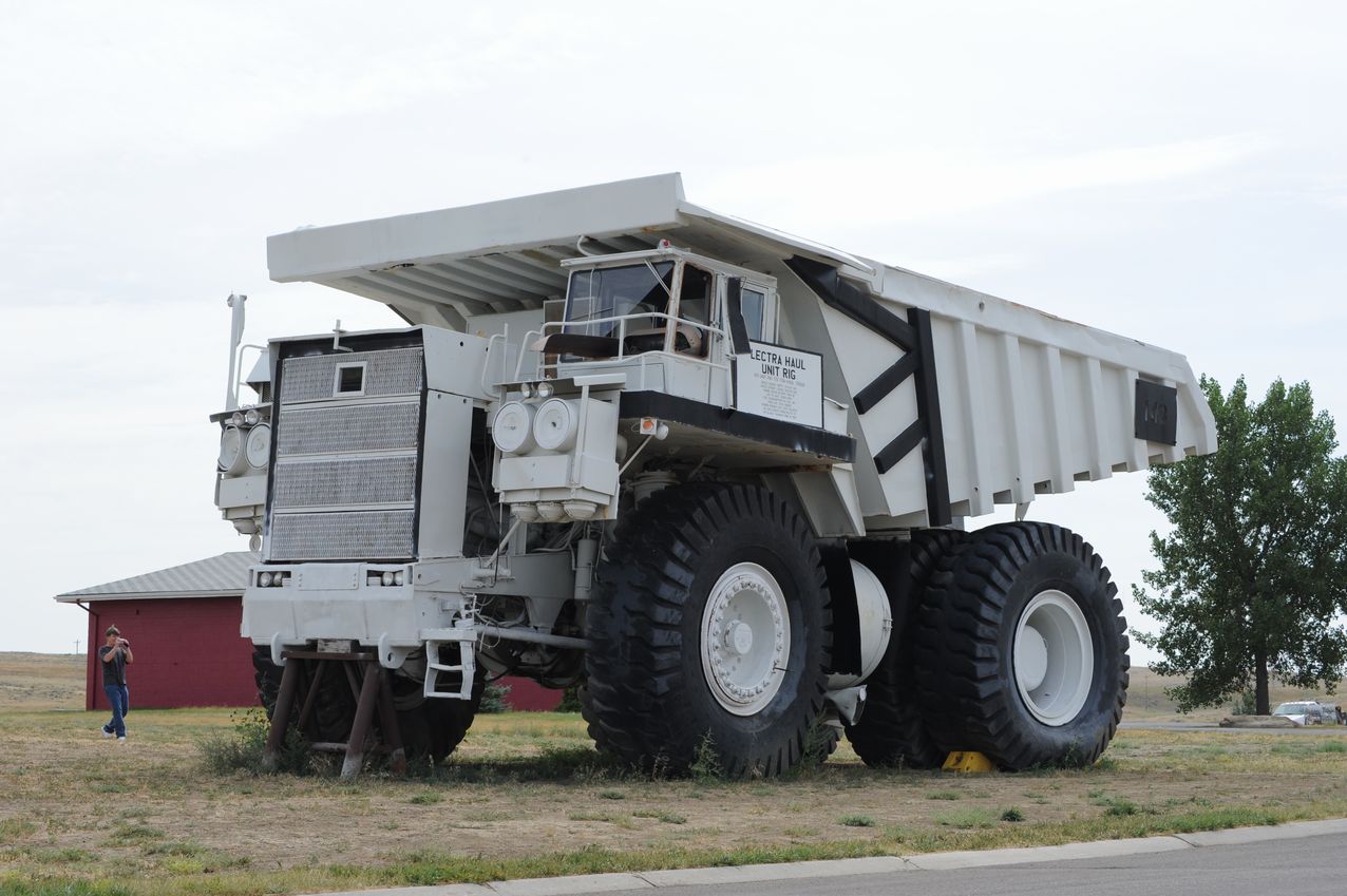 途中に巨大な170トン積みダンプが置いてあった。近づくと、それは観光案内所で、ヴォランティアのおばちゃんがワイオミングの見どころを説明してくれる。「炭鉱に興味がある。」と言うと、「このあたりにはたくさん炭鉱がある。私の亭主も炭鉱で働いているの。ワイオミングの石炭はこの国のエネルギの45%を賄っているのだからすごいのよ。」と言う。「次の筋を左に曲がって40分くらい行くと Open Pit(露天掘り)があって、外からも見えるわ。」というのでそこに行くことにした。