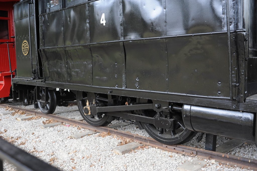 何枚か写真を撮ったので、ご興味のある方は模型化されると良い。既存の模型の一部を切り取って、箱をかぶせるだけでもできそうな形である。軌間は3 ftである。客車も好ましい形をしている。