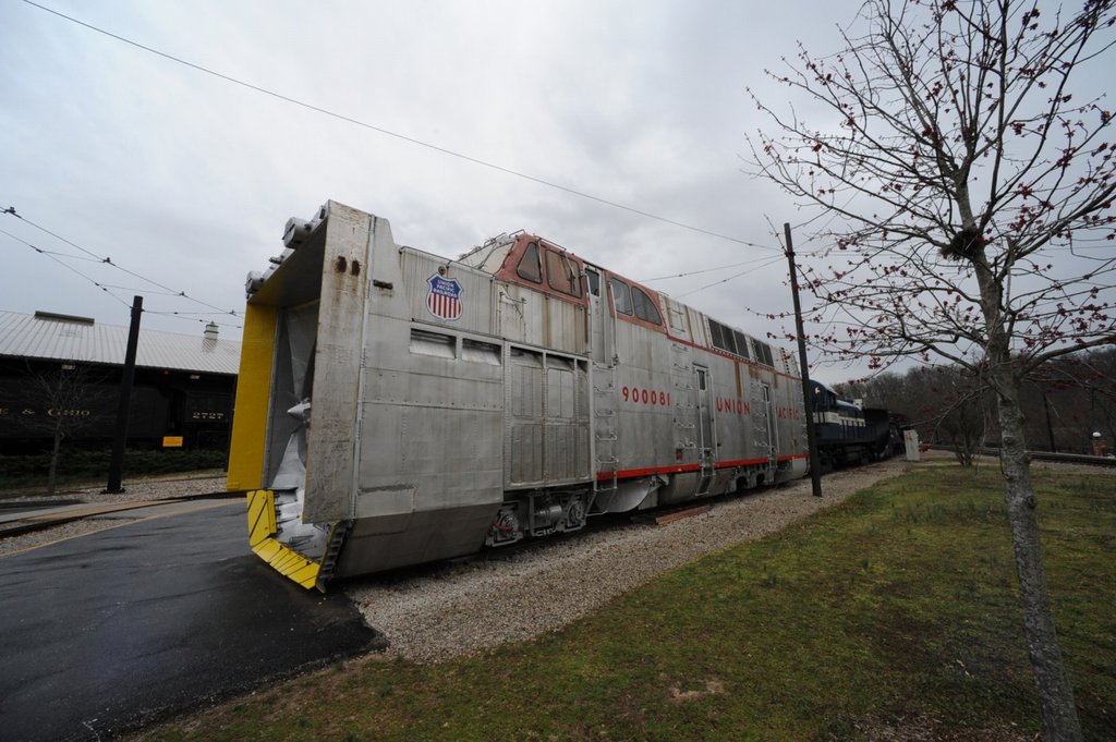 Chicago, Burlington & Quincy 鉄道 のステンレス外被の #9908 "Silver Charger" である。この手のステンレス車は電蝕が起きるので、雨曝しにするのはあまり賢明なことではない。目に見える外側は問題なさそうに見えるが、裏側の鋼材の腐蝕はひどい。1輌だけの展示で面白くない。せめて3輌つないで欲しい。