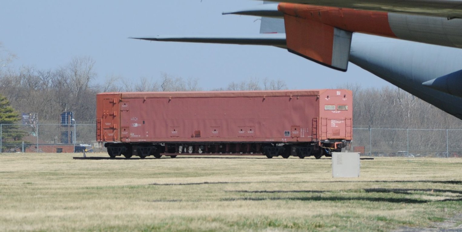 この貨車は博物館の芝生の上にある。スパン・ボルスタを持った16輪の車輌である。この中には核弾頭付きの大陸間弾道ミサイルが入っていた。その名前は "Peacekeeper" である。冷戦時代に、ソ連からの核攻撃に備えて、この貨車50輌を用意して全国に展開させることにした。一列車二輌を連結し、シェルター内に保管する。必要な事態になったら、列車を引き出して、敵には予想不可能な場所に展開し、発射する。ピンポイントで狙われると、固定のミサイル・サイロでは発射前に攻撃されてしまうので、移動式の発射装置が必要とされたのだ。