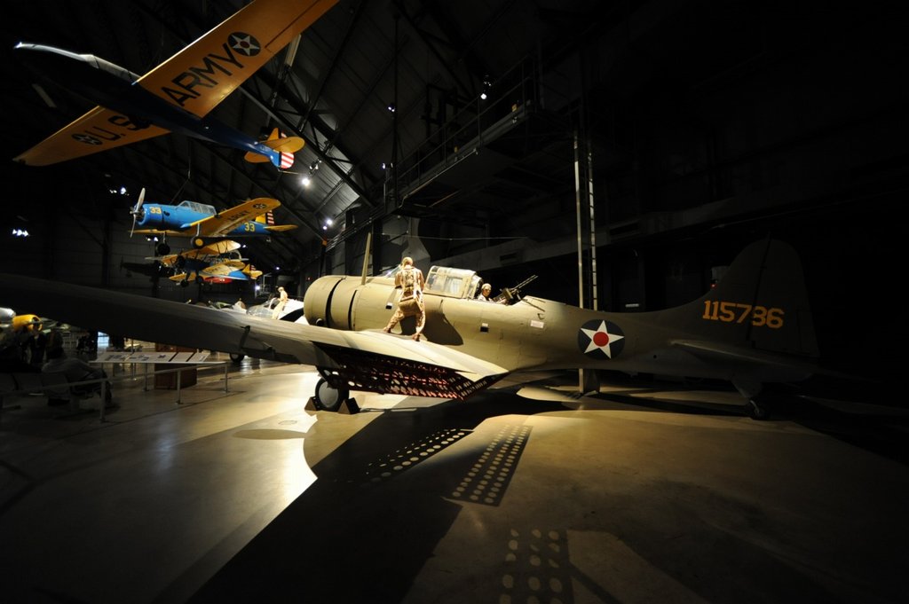 筆者が特に興味があったのは双発の爆撃機B-25である。太平洋上空母から無理やり発進させ、多大な損失を出しながらも、日本初空襲を成し遂げた。展示はやはり航空母艦の甲板を摸したものである。エンジンを風雨、潮風から守るべく、シートで覆ってある様子も再現してある。ゼロ戦の21型も展示してあった。