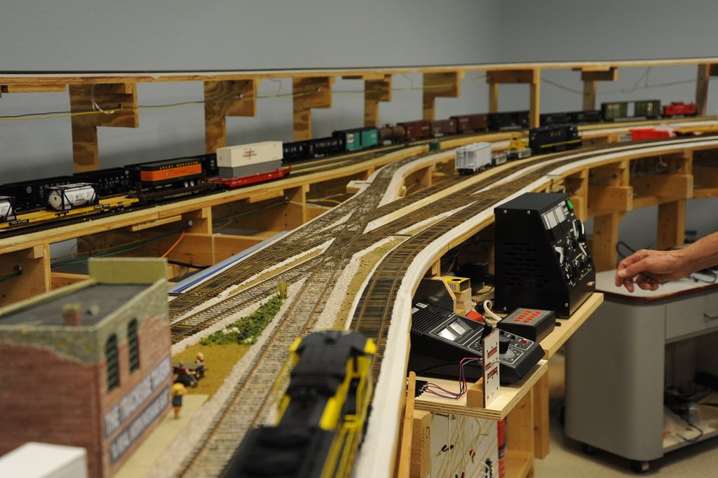 このレイアウトはアメリカの東部の雰囲気を持っている。NYCとかPennsylvania鉄道の車輌が多い。厚くバラストが敷かれた複線の本線を持つ。線路の敷き方は非常に念入りで、透かして見ても波打っていたり、蛇行したりしているところは見つからない。