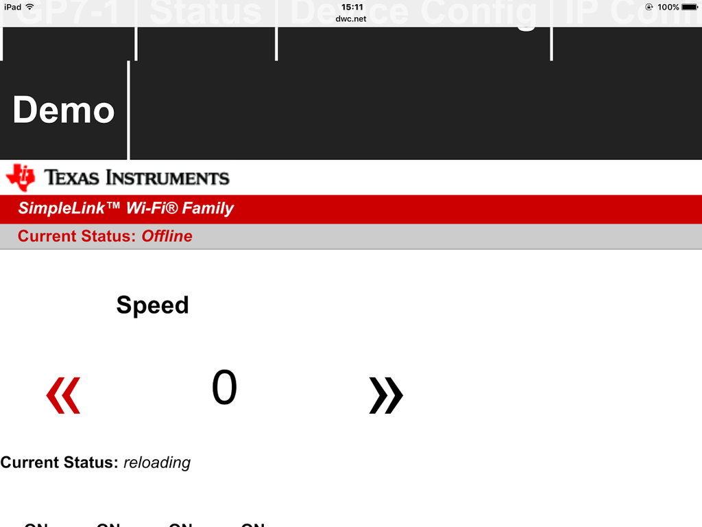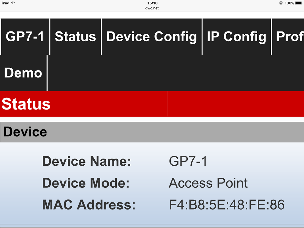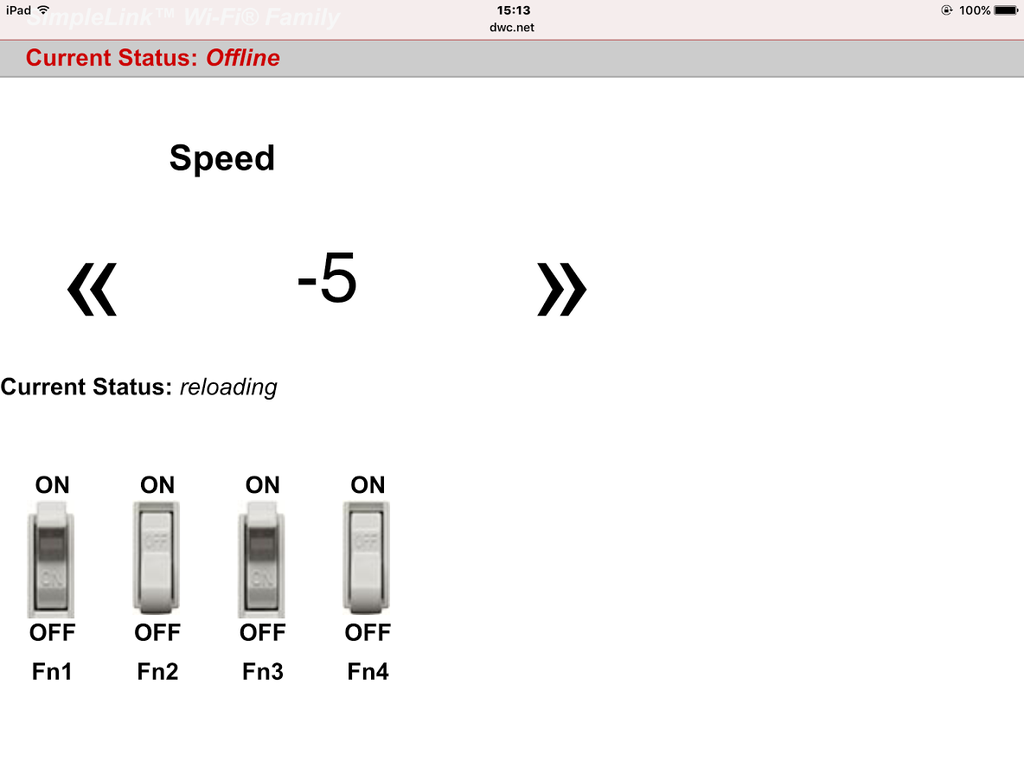 機関車の制御部分がWiFiの発信機である。機関車のSWをonにすると、電波が発信され、手元の iPad に届く。iPad の設定を開いて、WiFi設定をすると”GP7-1”が出ている。それをタッチするとつながる。