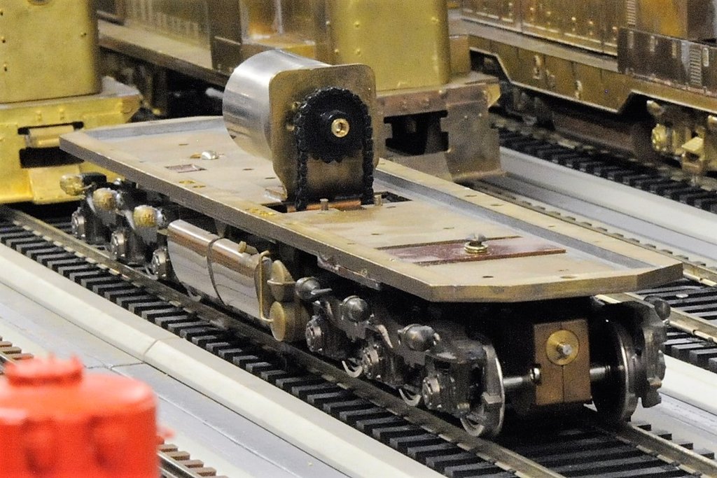 床板は安達庄之助氏が作ったもので、板に角材を貼ってある。台車はアメリカ市場で購入したものだ。駆動部品は3条ウォームで、逆駆動できるようにしてある。ロストワックス部品はまだ高価であった時に購入したものを付けている。量産品も持っていたが、エッチング製であまり面白くなかったので、別の機関車とトレードした。