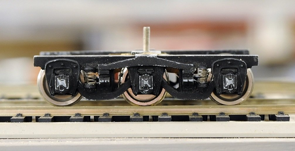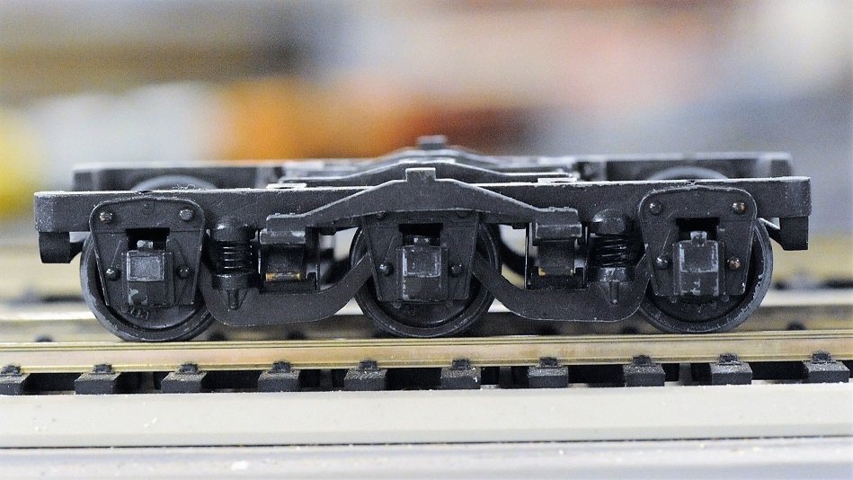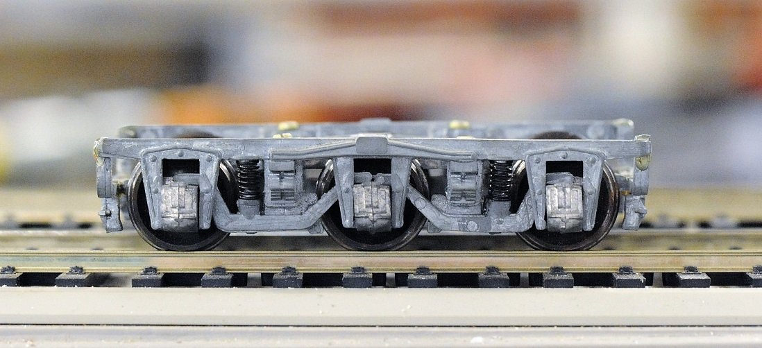 二軸貨車はリジッド(固定車軸)でよいという暴論を見たことがあるが、それは走らせていない人の意見だ。たとえ走らせていたとしても、節度のない走り方にも不満を感じない人であろう。二軸貨車こそバネが必要である。そこそこに硬いバネで、しかも緩衝性があれば、実に快適に走らせることができる。これは高校生の時に実験して確かめた。
