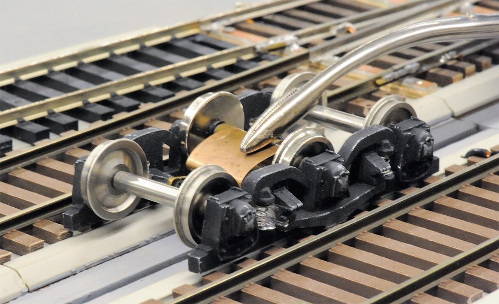 話は変わるが、先日某所で二軸貨車をつないで走る場面を見た。ガラガラと走るのは仕方がないが、ポイントで飛び上がる様子が見えた。実にまずい。「重くすれば良くなりますよ。」と言う人もいるが、それは間違いだ。重くすれば、運転によって線路が傷むし、飛び上がりが無くなるわけでもない。極めてゆっくり動かせば、飛び上がりはしないが、それはもはや鉄道模型ではない。線路が傷むと言うと「そんな馬鹿な。」と言う人がいるが、これは事実である。フログが減る以外に振動でハンダが疲労し、導通不良を起こす。