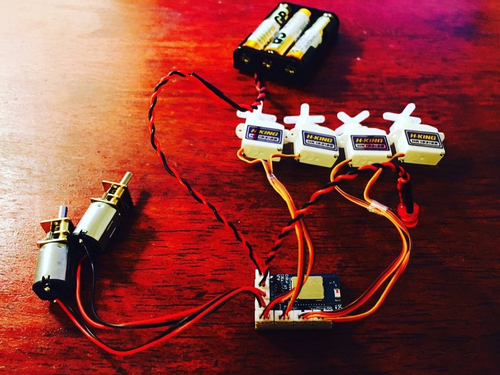 設定はほとんど何もしなくてよい。そのまま動くはずだ。ただ、モータ出力2チャンネル、サーボ出力が4チャンネルもあって、それで何をしようかということになる。LED出力も4つある。