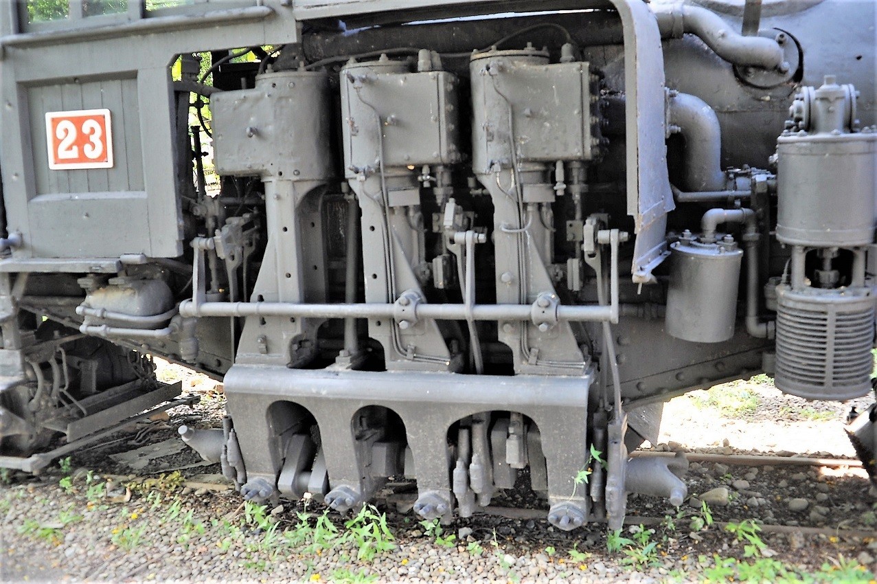 動態保存されているのを見かけた。この3気筒も、傘歯車は後ろにある。火を入れればすぐ動きそうである。これはオイル炊きに改造されている。石炭を焚くのにはある程度の技量が必要であり、カマ焚きを養成するのはもう賄いきれないのであろう。