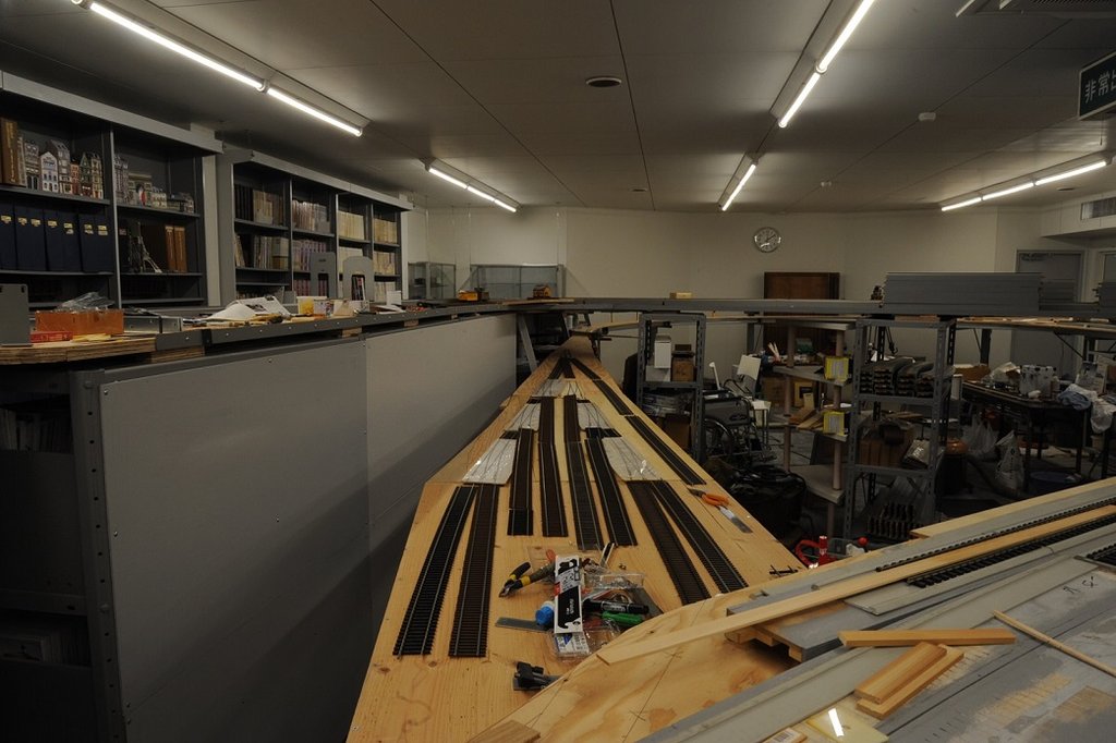 現在計画中の新レイアウトは60坪あり、複線である。複線の片方はDCC専用にする。もう一方は本線のみ、DC, DCCを切り換えられるようにし、その側線はDC専用とする。どちらもウォーク・アラウンドにする。DCのウォーク・アラウンドは30年前に完成させてある。ただしテザード(スロットルのケーブルを順次差し替えて行く方式;要するに「ひも付き」のことである)である。