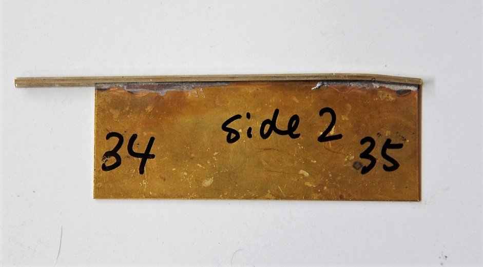 尖端レイルの根元のヒンジは細いリン青銅板である。それほど薄くない。ある程度の剛性を持たせたいので0.4 mm厚とした。ヒンジ部から2 mmほどはハンダが回らないように留意した。そうしないと非常に狭い範囲に力が集中して折れてしまうからだ。