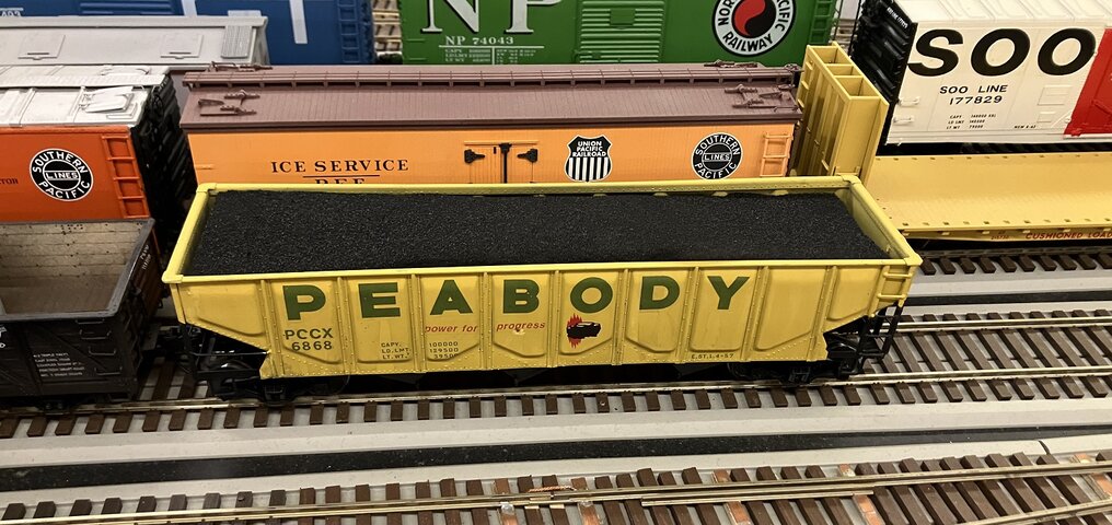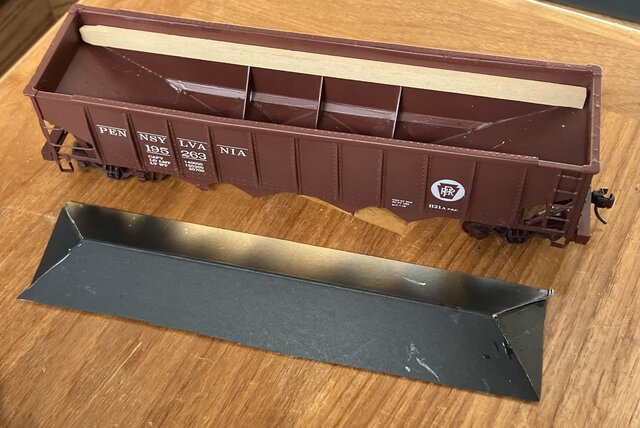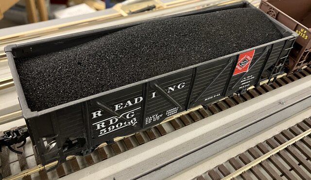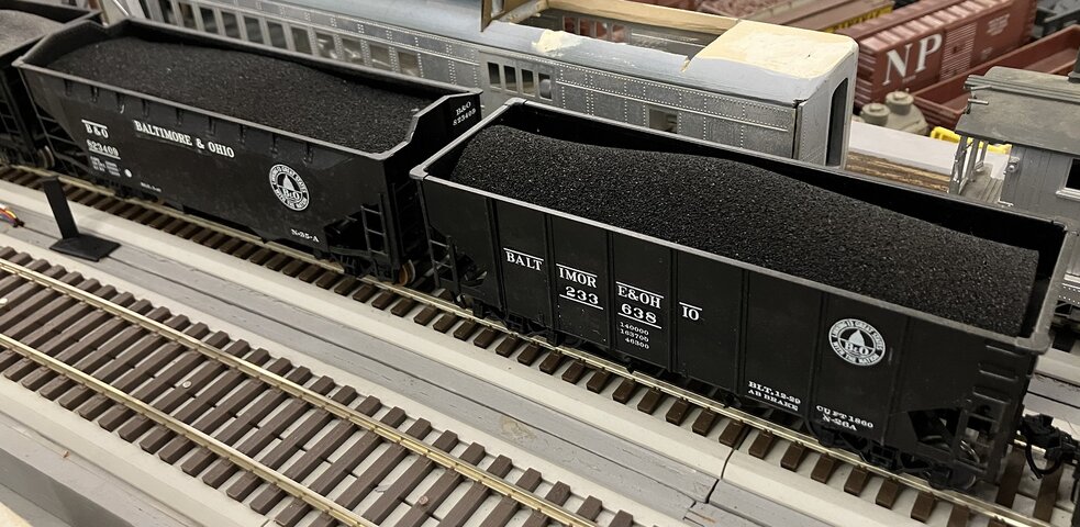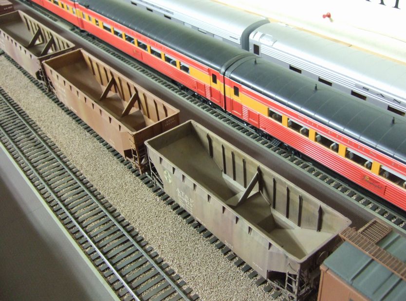 open top hopperが空で走っているのは避けたい。空でも良いという人もいるが、筆者の作ったホッパは中が汚い。ハンダ付けで複数の板をつなぎ合わせたものもあるから、楽屋裏を見せたくないのだ。今回、クラブの会合に持って行かねばならないので、急いで仕上げる必要があった。