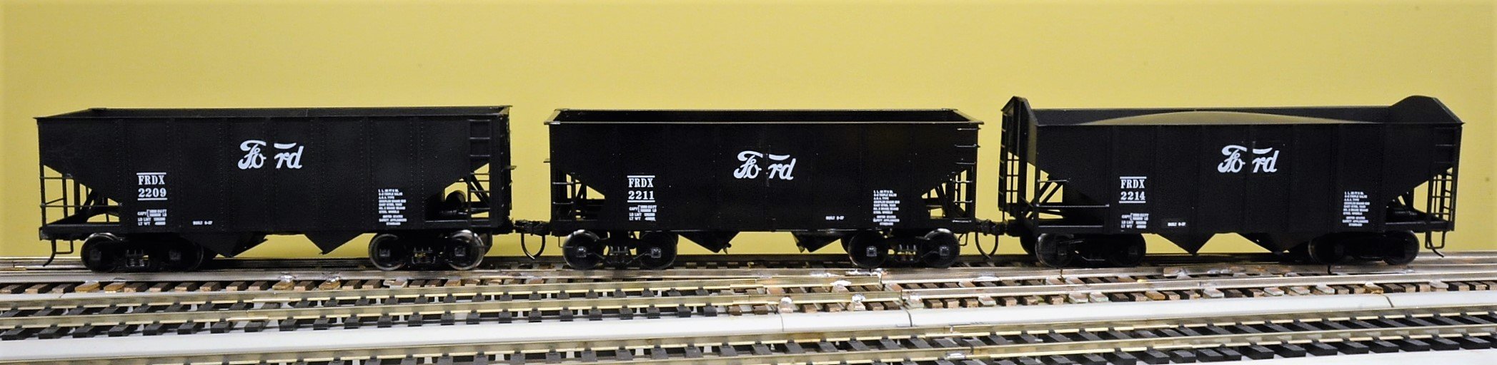 今回のホッパの中には珍しい個体がある。C&Oの 70 ton peaked end hopperという車輌である。これは長年探していたが、出会わなかったものだ。入手したジャンクの中に半分壊れたのを見つけ、丁寧に修復した。車輪、台車はまだ塗ってない。
