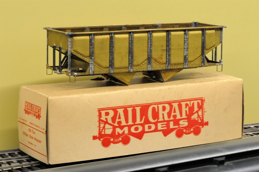 Rail Craft はミズーリ州の製造者で、1940年代に様々な貨車のキットを出していた。ホッパは何種類もあった。そのうちのパネル・サイドというヴァージョンである。ホッパの縁部は寸法が決められていたようで、その下の部分を細工して、容量を増やしていた。骨の外に外被を付けるのは先日お見せした。これは外に持ち出したパネルを付けている。加工硬化で薄板でも頑丈になるのだろう。 全体は、工場でジグにかぶせて組んだようだ。直角も出ている。ハンダ付けはアメリカ人にしてはうまい。ジグから外して、内側はあとから付けてある。すべての要所に隙間なくハンダが流れている。購入者は縦のリブとかデッキ部の造作、梯子などを付けるわけだ。結構面倒な仕事もあり、自分で作ったという満足感もかなり得られるようになっている。